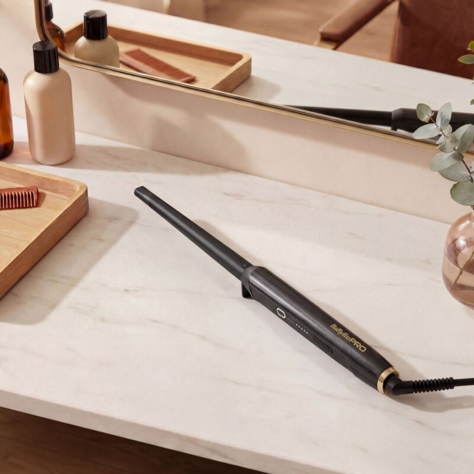 BaByliss PRO Conical Wand 32–19 mm BAB2481E este un ondulator profesional fără clapetă, conceput pentru bucle naturale și progresive. Forma conică (diametrul variabil 32 mm → 19 mm) permite crearea de bucle lejere, definite, fără urme de prindere și cu control total asupra rezultatului.